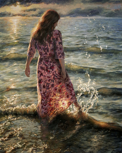 2019a girl wades into the water