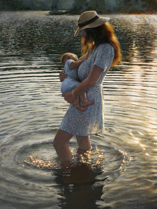 2023mother holding her child whilst standing in the water